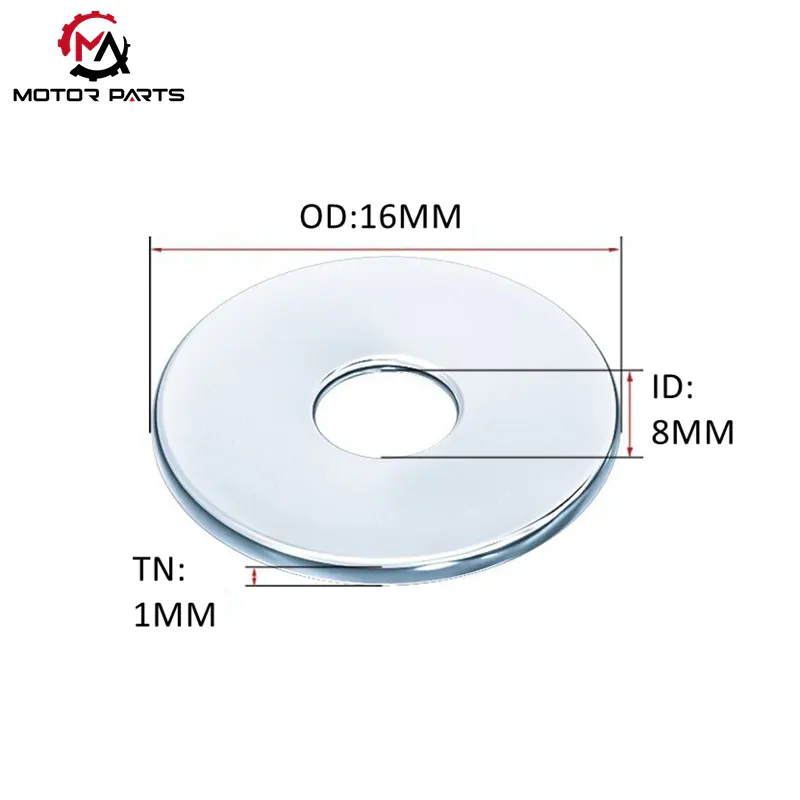 Η Max Trading τηρεί αυστηρά τις αρχές της μηχανικής μηχανικής, διασφαλίζοντας την ακριβή αντιστοίχιση των υλικών κατά τη φάση επιλογής για Υψηλής ποιότητας γαλβανισμένες ροδέλες παξιμαδιών μοτοσικλετών M8.