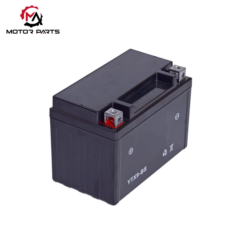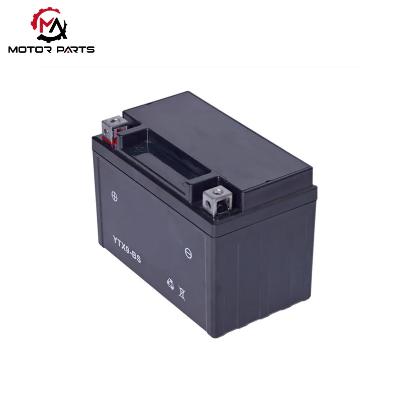 Η μπαταρία μοτοσικλέτας YTX9-BS έχει προφορτιστεί στο εργοστάσιο και μπορεί να εγκατασταθεί απευθείας. Οι τύποι ακροδεκτών είναι ως επί το πλείστον τύπου μπουλονιών παξιμαδιών και μερικοί είναι εξοπλισμένοι με φλάντζες αφρού για προσαρμογή σε διαφορετικά μεγέθη κουτιών μπαταρίας.